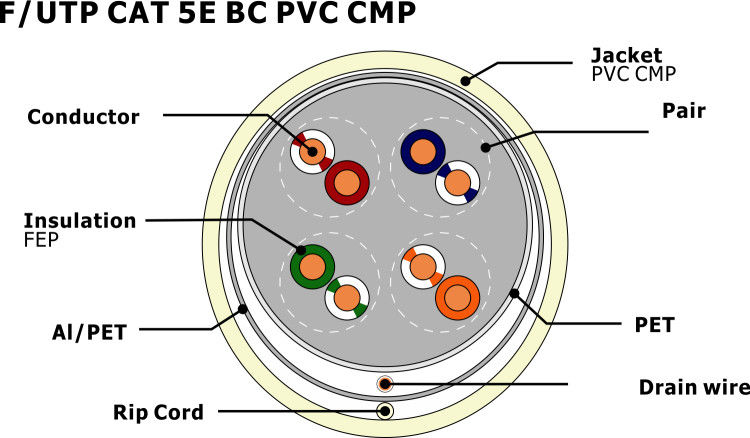 F/UTP CAT 5e BC CMP Solid 0,50 mm Copper Conductor Indoor Cat5e Network Cable UL/ETL Certified NO 7112115